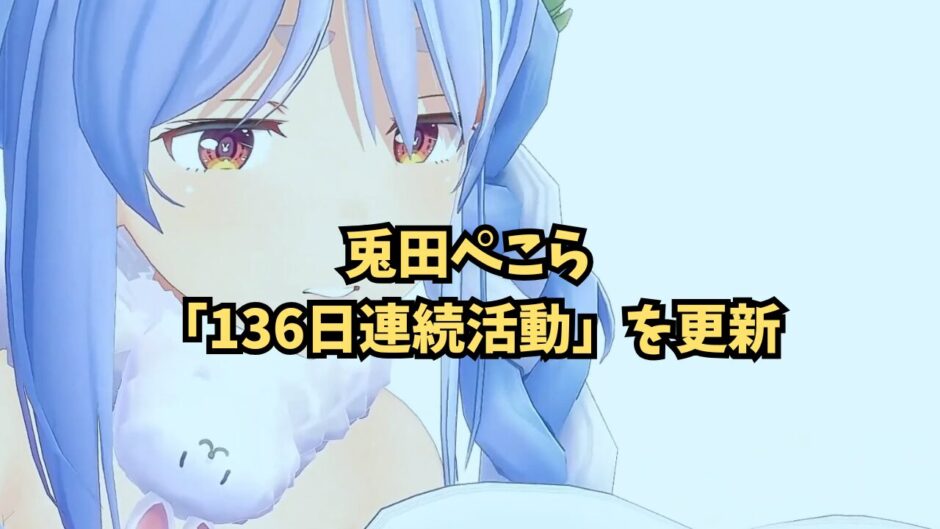 ホロライブ3期生・兎田ぺこらさんが、配信およびライブ活動における136日間連続(2026年4月20日時点)という記録を更新し続けています。