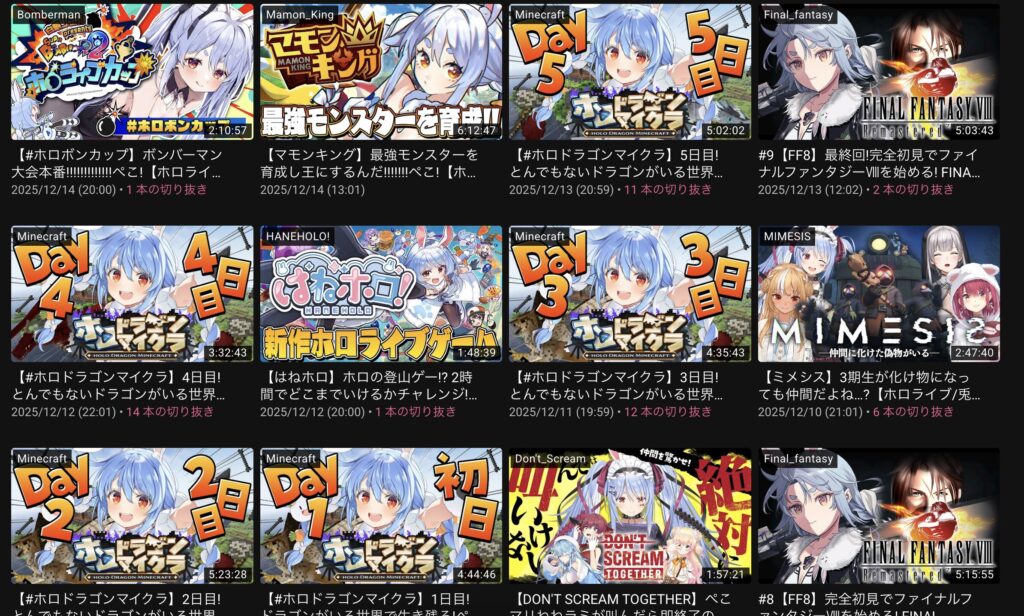 | 12月11日 | はねホロ / 龍マイクラ 3日目 |