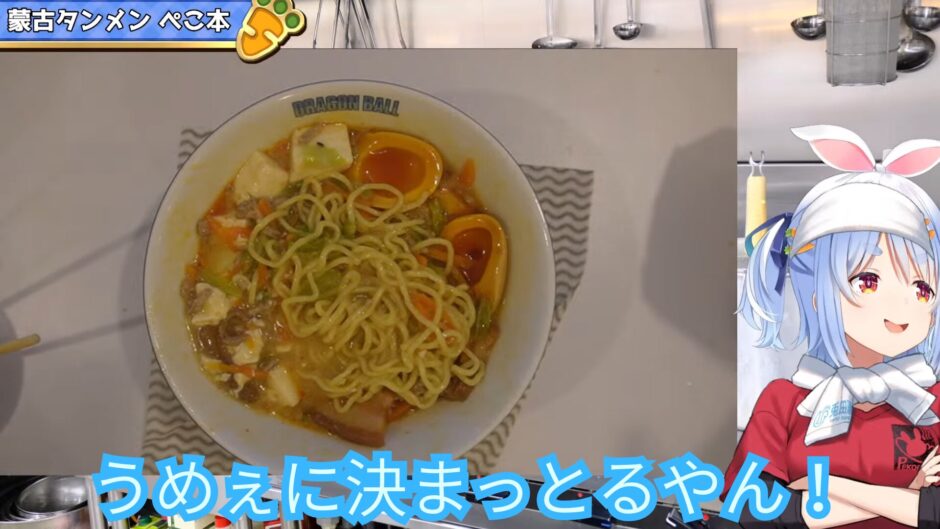 今回の料理配信は、兎田ぺこらさんが店主になりきる「蒙古タンメン ぺこ本へようこそ!」という挨拶からスタートしました。