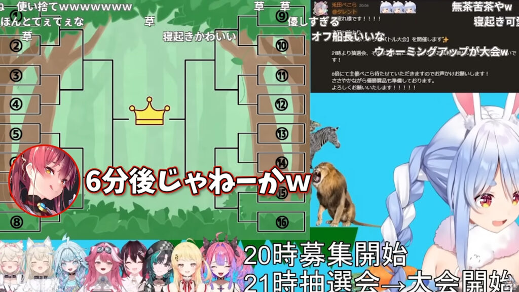 マリンさんの急な参戦を受けて、ぺこらさんは「いい女来た。マリン来た。」と喜びのコメント。大会開始直前には「OBSも立ち上げてねえんだよ」と慌てるマリンさんの様子も配信され、視聴者からは「寝起きのマリンの声聞けた」「都合のいい女すぎるw」といったツッコミや、「可愛すぎる」「急な出演で爆笑」というコメントが相次ぎました。
