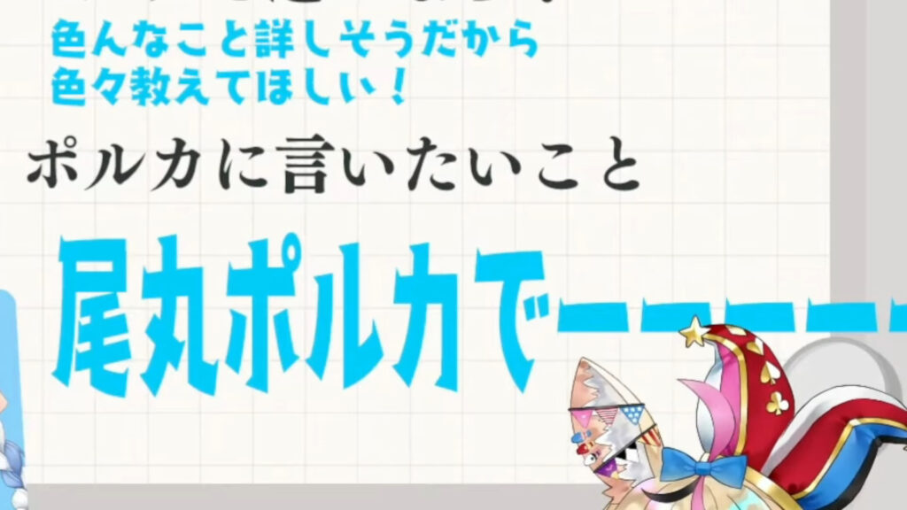 ぺこらさんからの「(ポルカは)いろんなこと詳しそうだから色々教えて欲しい」という、これまた少し曖昧なリクエストにも、「お互いの気が乗ってるうちに誘わないと!」と、コラボ実現に前向きな姿勢を見せていました。