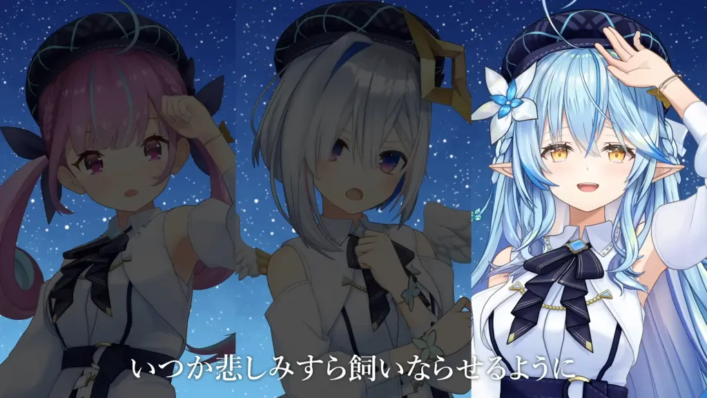 同曲は、湊あくあさん・天音かなたさん・雪花ラミィさんの3人で歌った楽曲ですが、湊あくあさんと天音かなたさんはすでにホロライブを卒業しています。