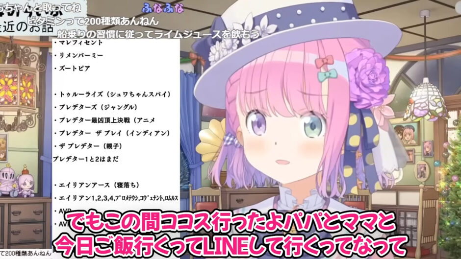 姫森ルーナさんは配信の中で、「この間ココス行ったよ、パパとママと」と、家族3人での外食を楽しそうに報告しました。