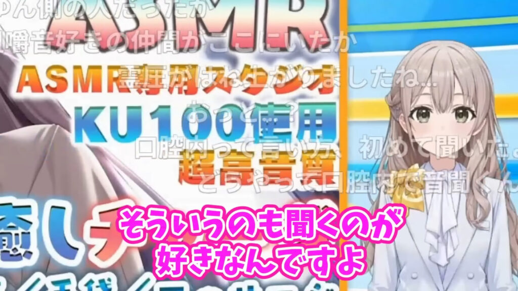 配信中、ファンから寄せられたコメントをきっかけに、花園さんが自身のASMRの「聞き方」について語る展開となりました。
