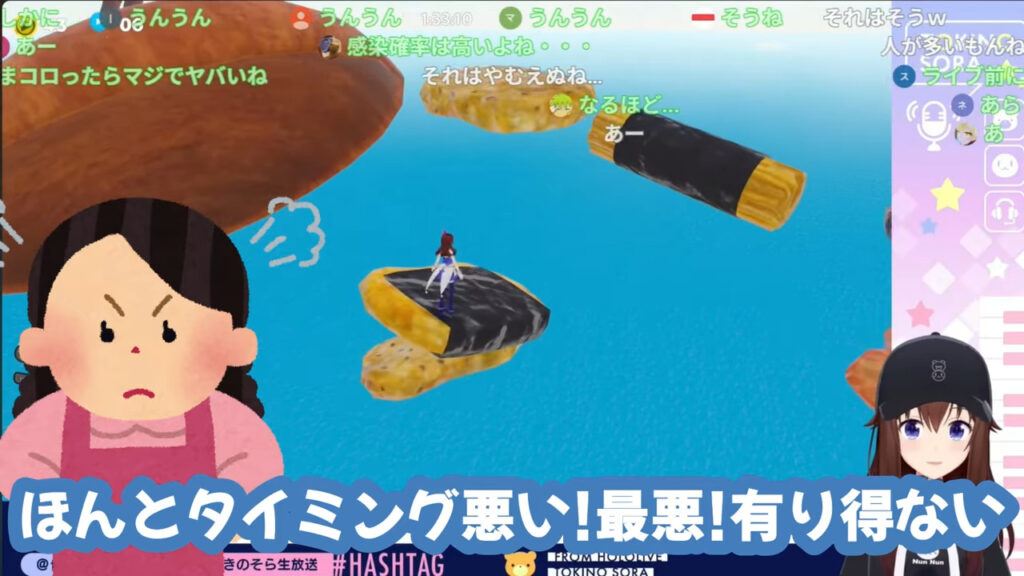 ときのそらさんは配信の冒頭、年末年始の過ごし方について触れ、今年は実家に帰れなくなったことを報告しました。その理由は、なんと父親の体調不良です。