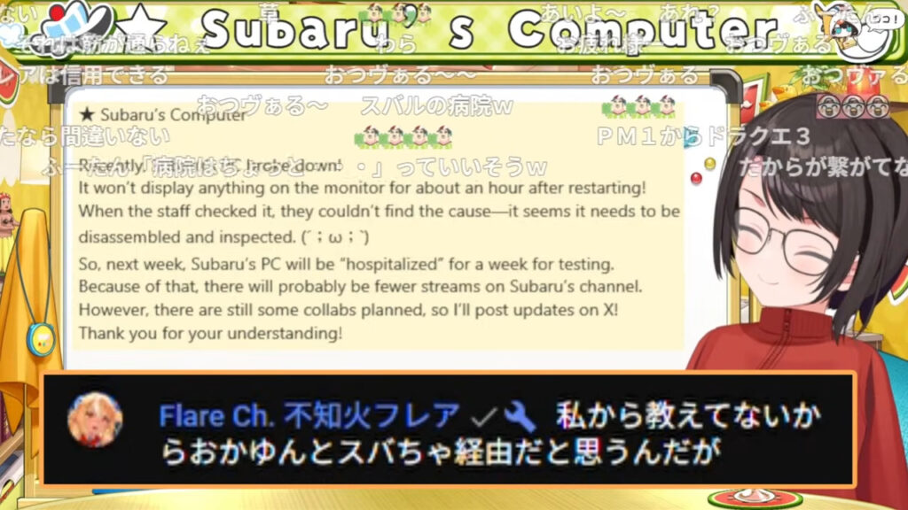 フレアさんはコメントで「私から教えてないからスバル経由だと思う」(※一部意訳)と指摘。これを受けたスバルさんは、ある可能性に思い至ります。