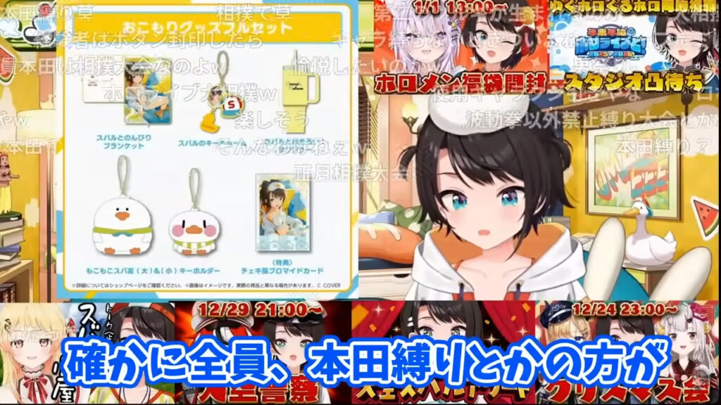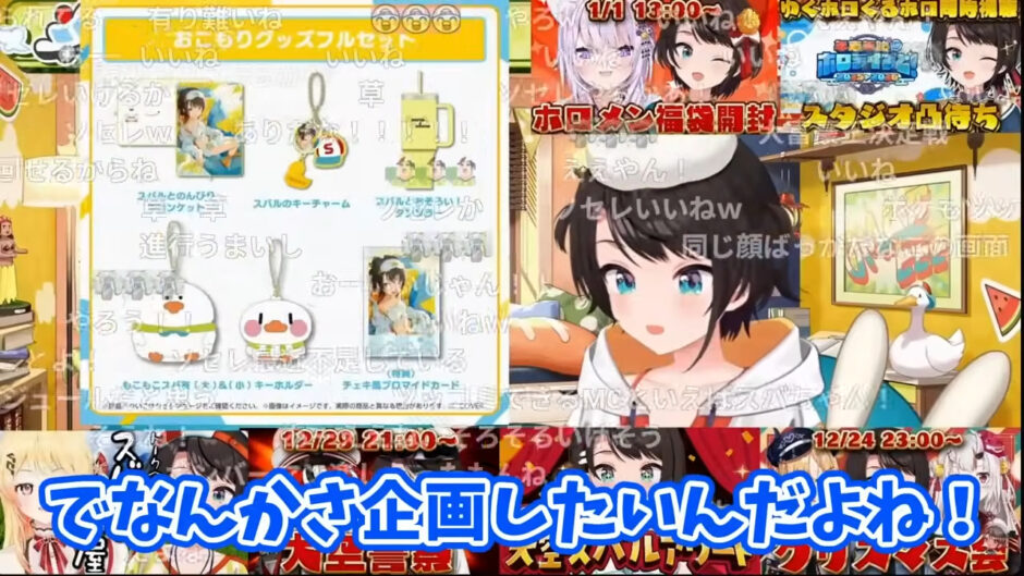 配信中、スバルさんは「今年はMCに呼ばれることが多かったかも」と振り返りつつ、来年は自分でも何か企画したい気持ちを明かしました。