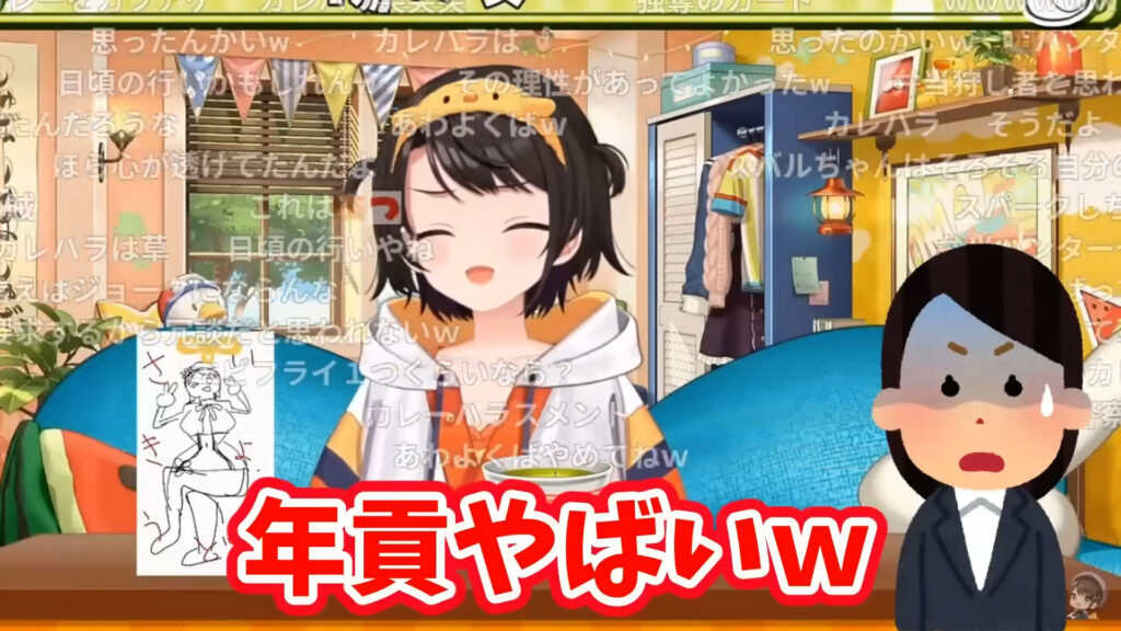 この状況をリスナーが「年貢」と例えると、スバルさんもそのノリに便乗。