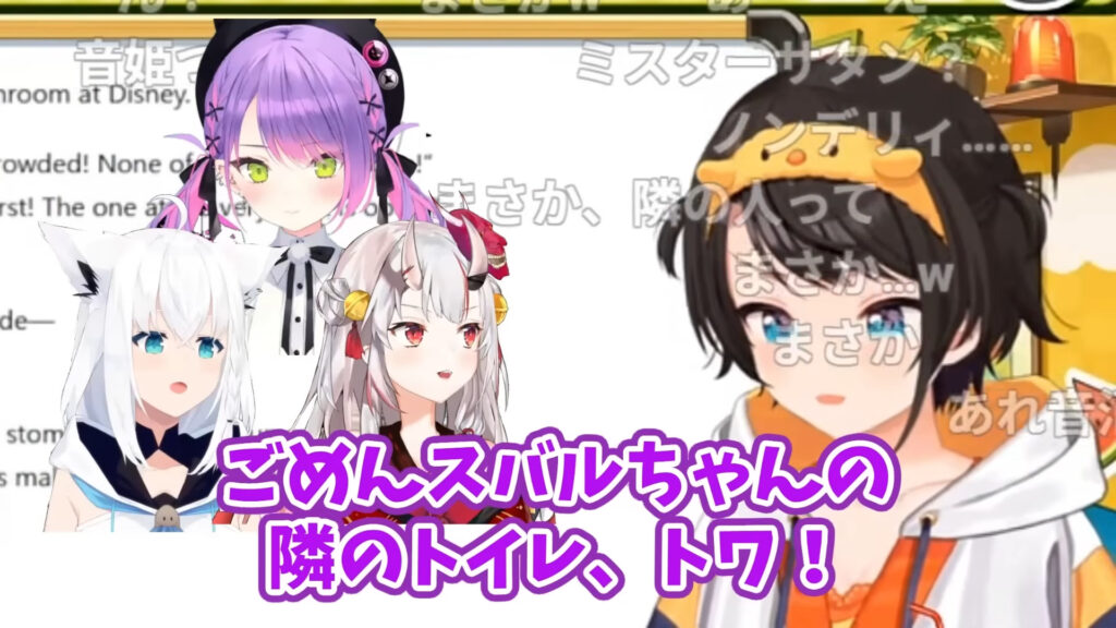 トイレで隣になった相手が常闇トワだと気づかず、デリカシーのない発言をしてしまい、2人で爆笑した顚末を語っています。
