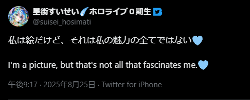 この言葉からは、「VTuber」という姿を通して、自身のパフォーマンスや歌、そして魂でファンを魅了しているんだという、彼女の強いプライドとメッセージが伝わってきますね。