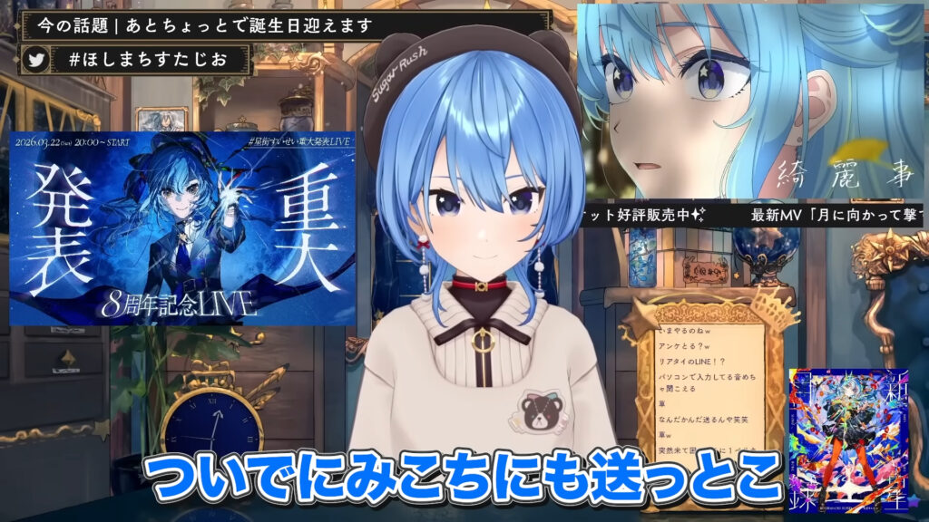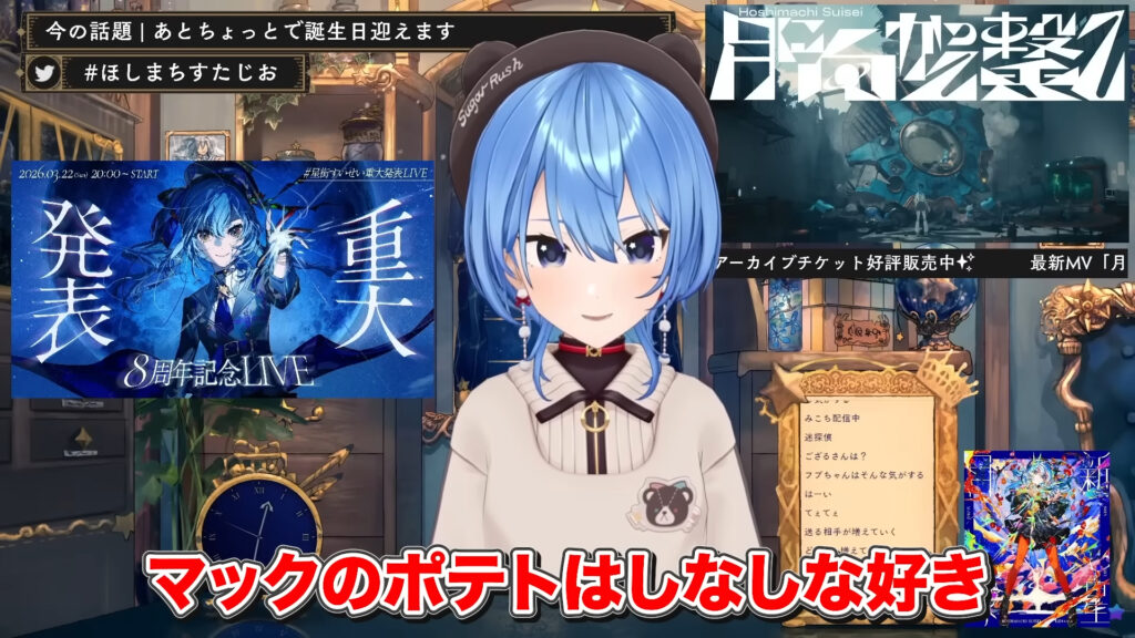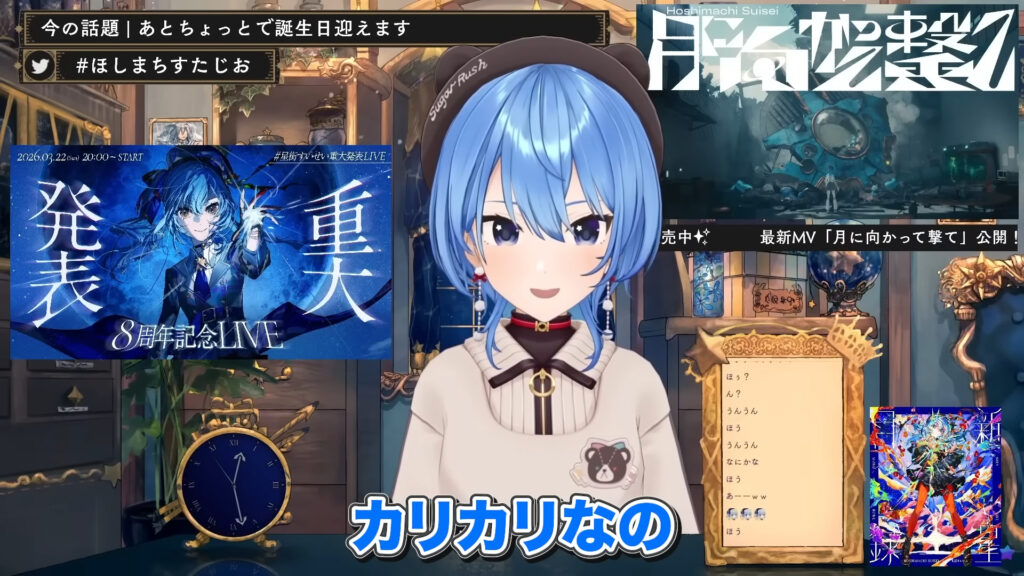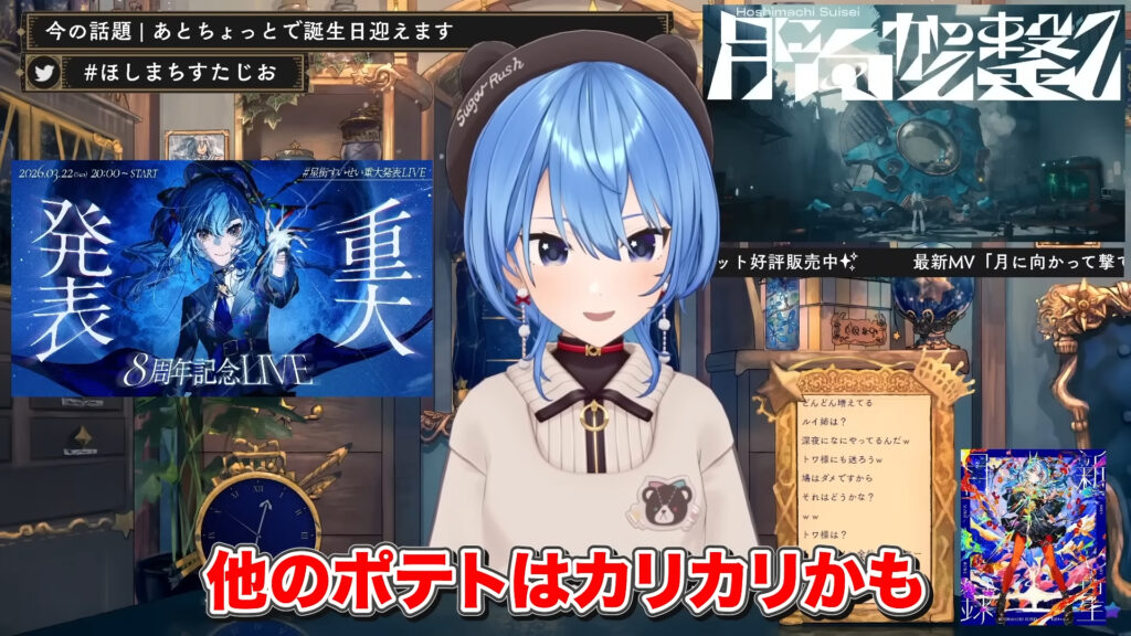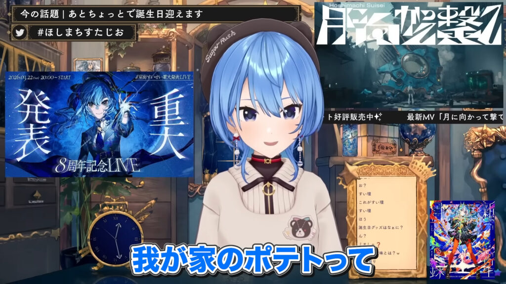星街すいせいは本日3月22日に誕生日を迎え、同日には生誕を記念したライブ配信を予定しています。このライブでは「重大発表」が行われることも予告されており、どのような内容が明かされるのかファンの間で期待が高まっています。