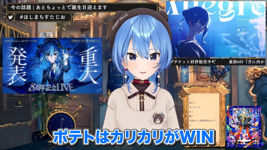 星街すいせいは本日3月22日に誕生日を迎え、同日には生誕を記念したライブ配信を予定しています。このライブでは「重大発表」が行われることも予告されており、どのような内容が明かされるのかファンの間で期待が高まっています。