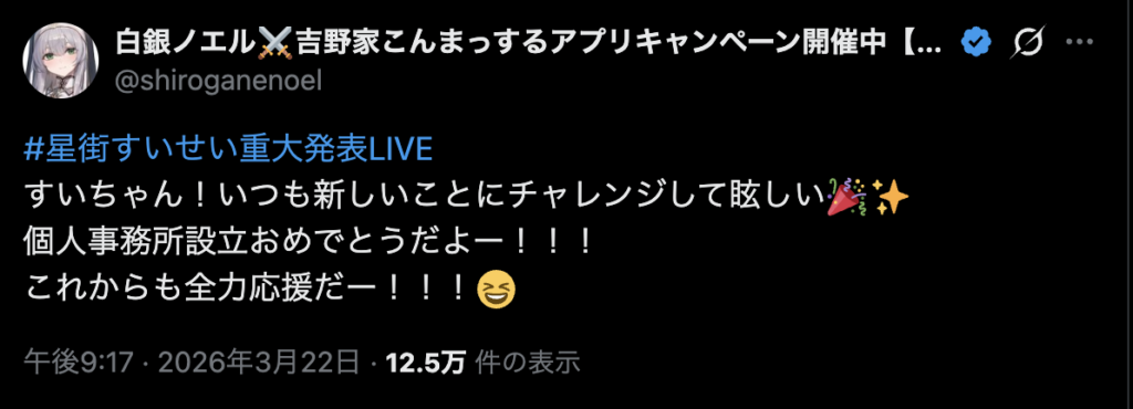 ホロライブでの活動を続けながらソロ活動の基盤を移す新しい体制に、さくらみこさんや白上フブキさんなど、同僚のメンバーたちからも驚きや祝福の声が上がっています。