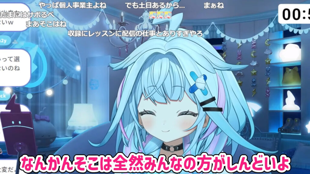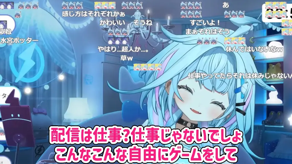 配信で水宮さんは、「VTuberは楽だと言えるのか?」という話題に対し、「リスナーに比べたら全然よ」と即座に回答しました。