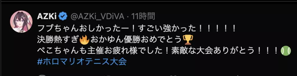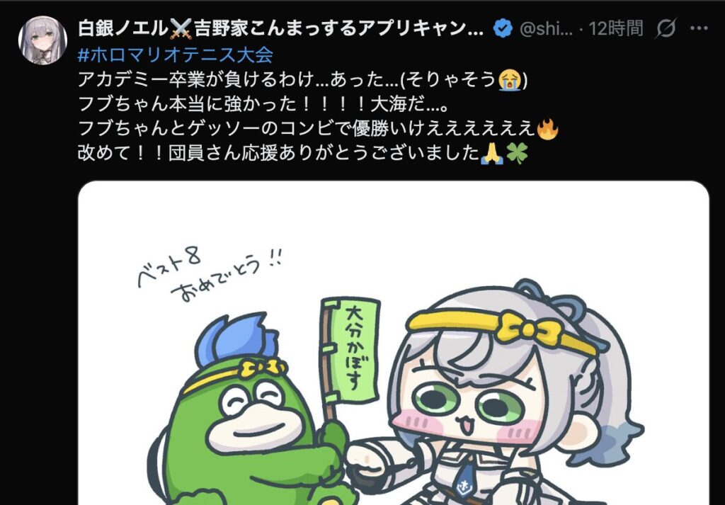 準優勝の白上フブキは大会後、SNSで「悔しい気持ちはあれど練習の成果を出せてよかったです」と振り返りました。