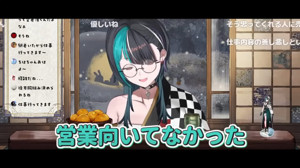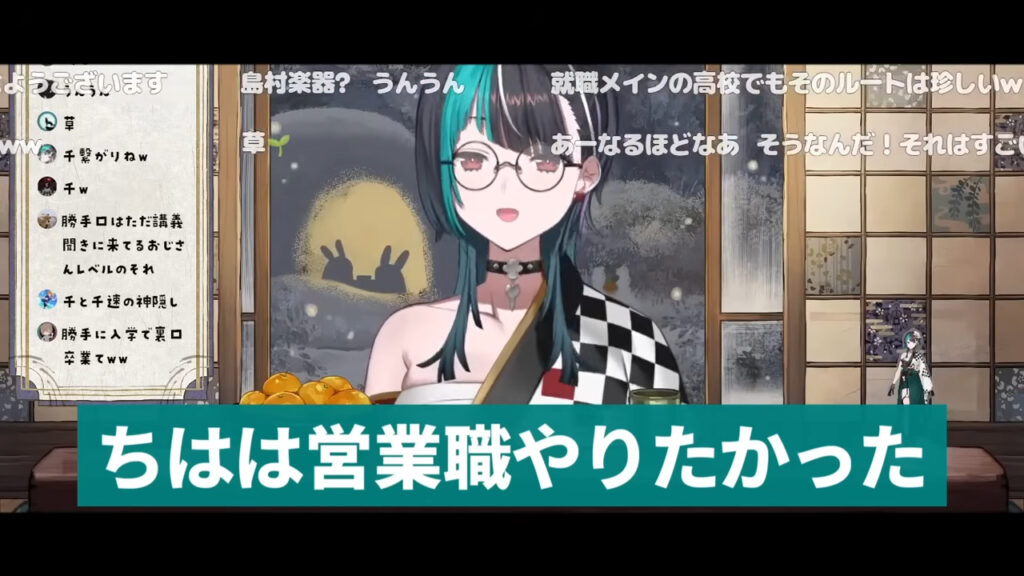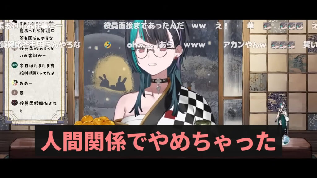 配信の中で、リスナーからの質問に答える形で自身の就職活動時代を振り返った輪堂千速。