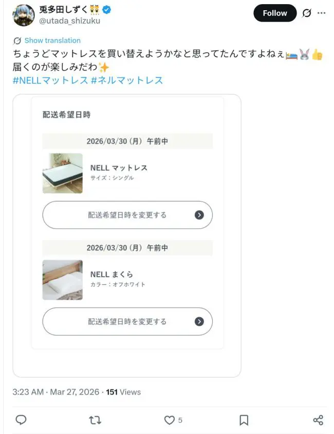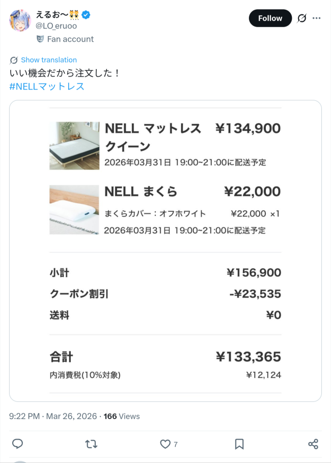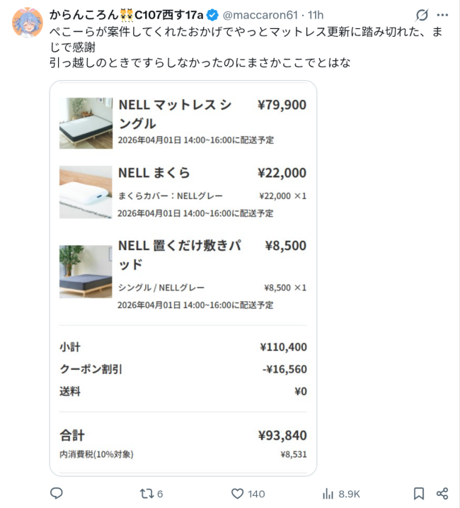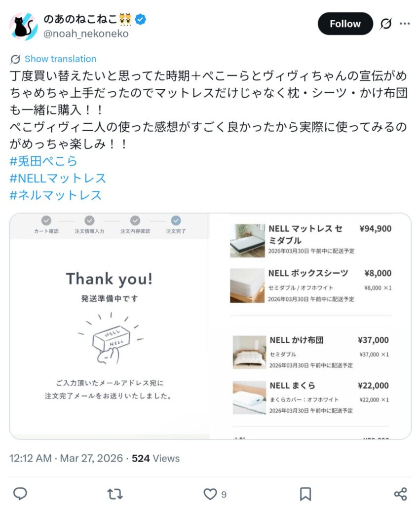 X)上でも、配信をきっかけに同商品を購入したという報告が多数見られており、先輩・後輩コンビによる“睡眠の質向上”の輪が広がっているようです。
