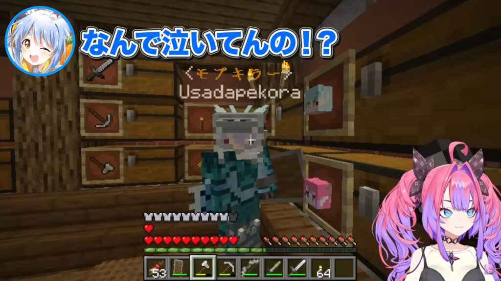 たまたま泣いているヴィヴィさんを見つけたぺこらさんは、「どうした? 大丈夫?」「あんたもしかして明日ぺこらと会うので緊張して泣いてんの?」と声をかけます。