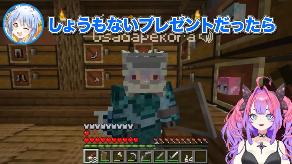 まだプレゼントを用意できていなかったヴィヴィさんが恐縮すると、しょうもないプレゼントだったらぶち◯すからマジで」とぺこらさんらしい言い方で場を和ませました。