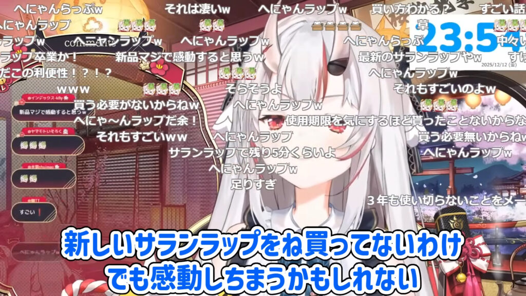話が出たのは、配信中のブラックフライデーの買い物についての雑談からでした。百鬼さんは、生活必需品であるサランラップを買わなければならない状況だと報告しました。