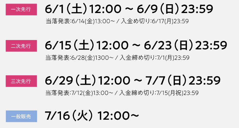 オフラインチケットの一次先行販売は6月1日(土)12:00から開始される。