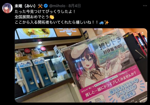 この企画は「Yahoo!カーナビ」とのコラボレーション企画「#推しドラ」の一環で、ドライブの休憩中にAZKiさんに会える特別な内容となっています。
