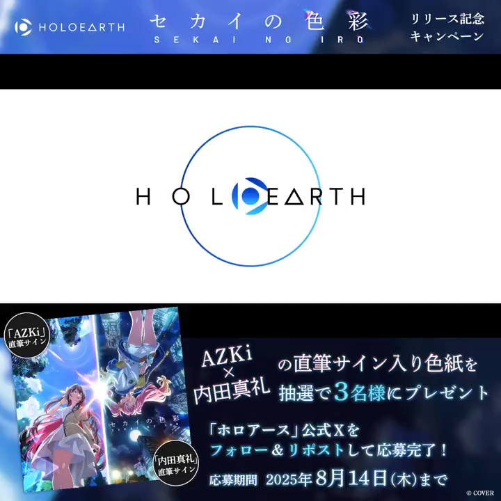 メタバースプロジェクト「ホロアース」が、楽曲『セカイの色彩』の配信リリースを記念したプレゼントキャンペーンをX(旧Twitter)上で開催します。