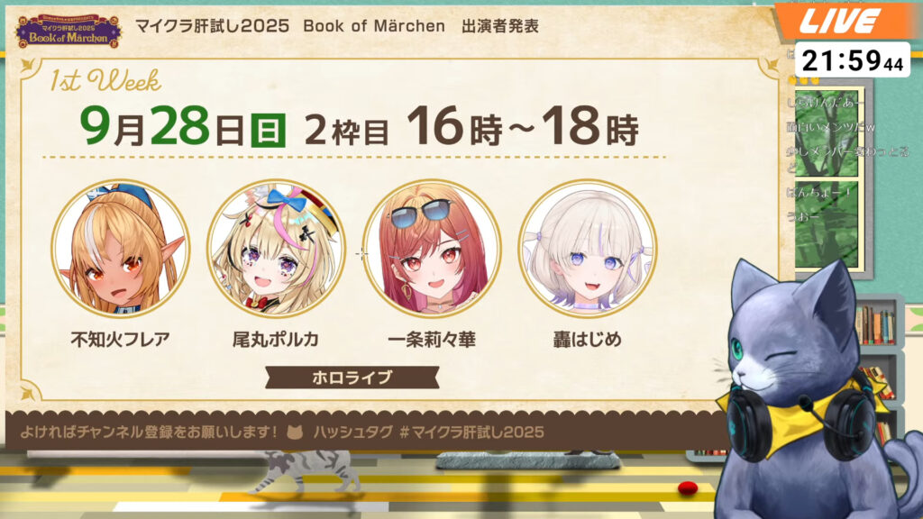 今年も夏の終わりを告げる大型ホラーイベント「マイクラ肝試し2025 Book of Märchen」の出演者が続々と発表されています。