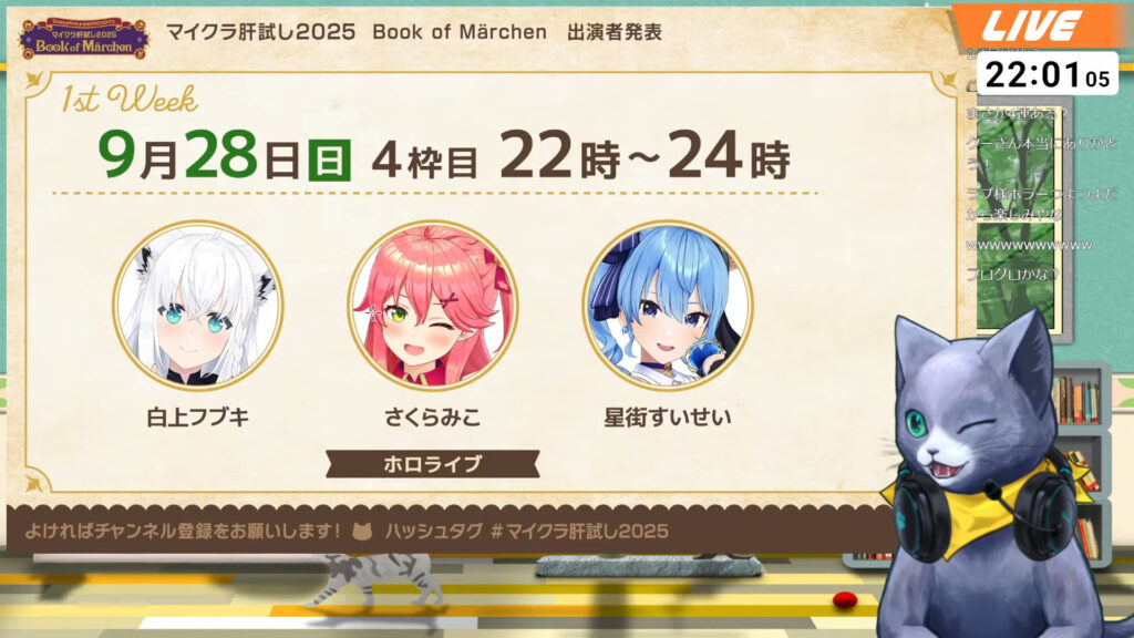 この日のトリを務めるのは、白上フブキさん、さくらみこさん、星街すいせいさんの3名。昨年も参加した人気ユニットが、再び肝試しに挑戦します。ベテランの彼女たちがどのような配信を見せてくれるのか、ファンからの期待は絶大です。
