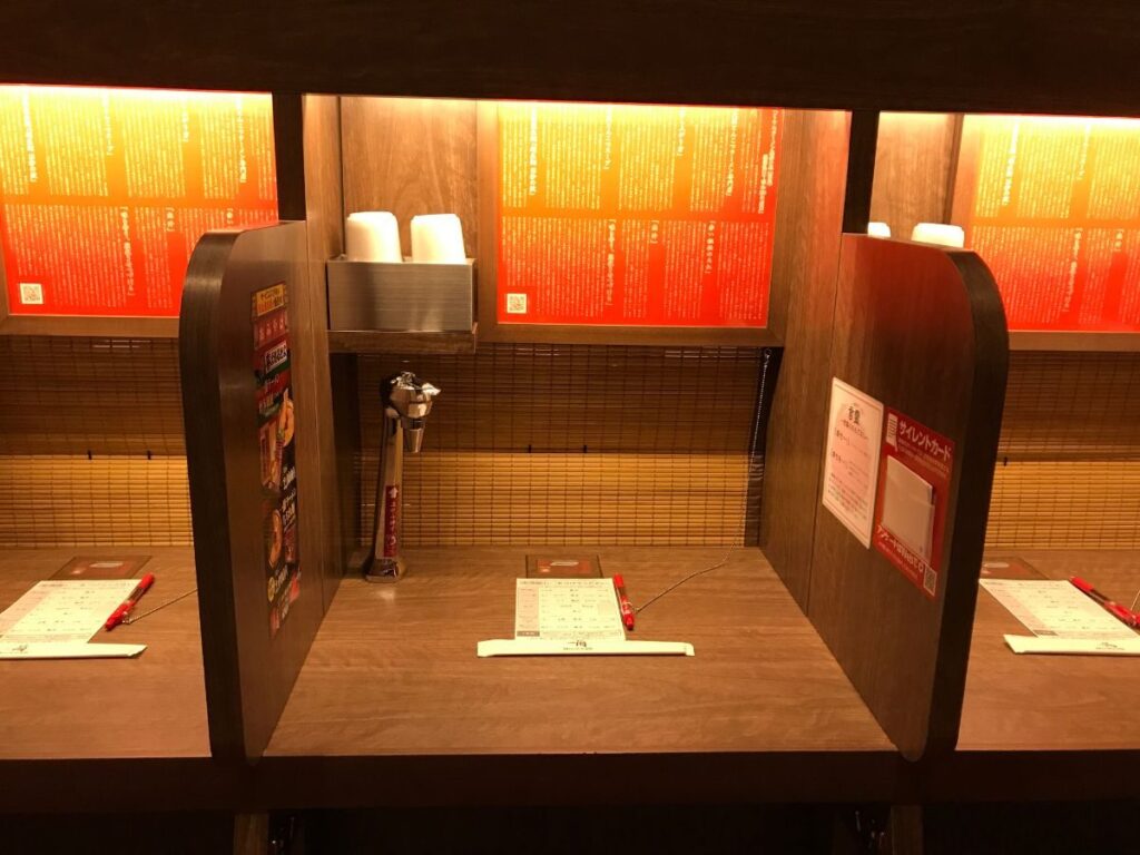 また、隣の席と仕切られた「味集中カウンター」や、声を出さずに札で注文できるユニークなシステムにも「おもろ!」と興味津々。特に、人目を気にせず食事に集中できる環境は「VTuber向けやん!」と、とても気に入った様子でした。