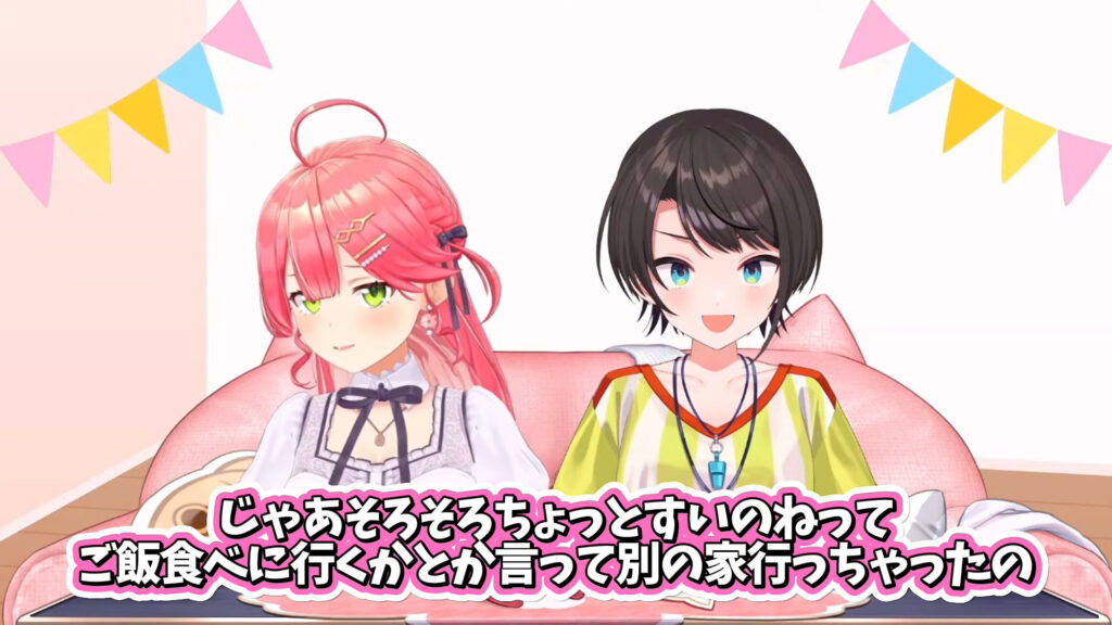 ホロライブ2期生の大空スバルさんが、0期生のさくらみこさんの新居で行われたオフラインコラボ(パーティー)にウキウキで参加。