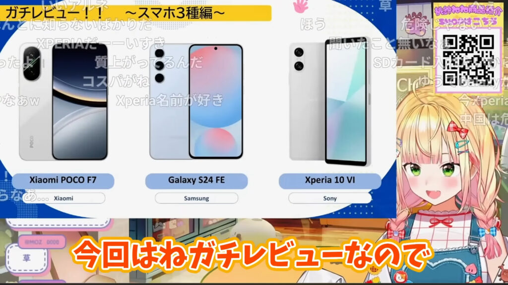 レビュー対象として、ミドルレンジ(中価格帯)モデルである「Xiaomi POCO F7」「Galaxy S24 FE」「Xperia 10 Mark VI」の3機種を選定したことを明かしました。