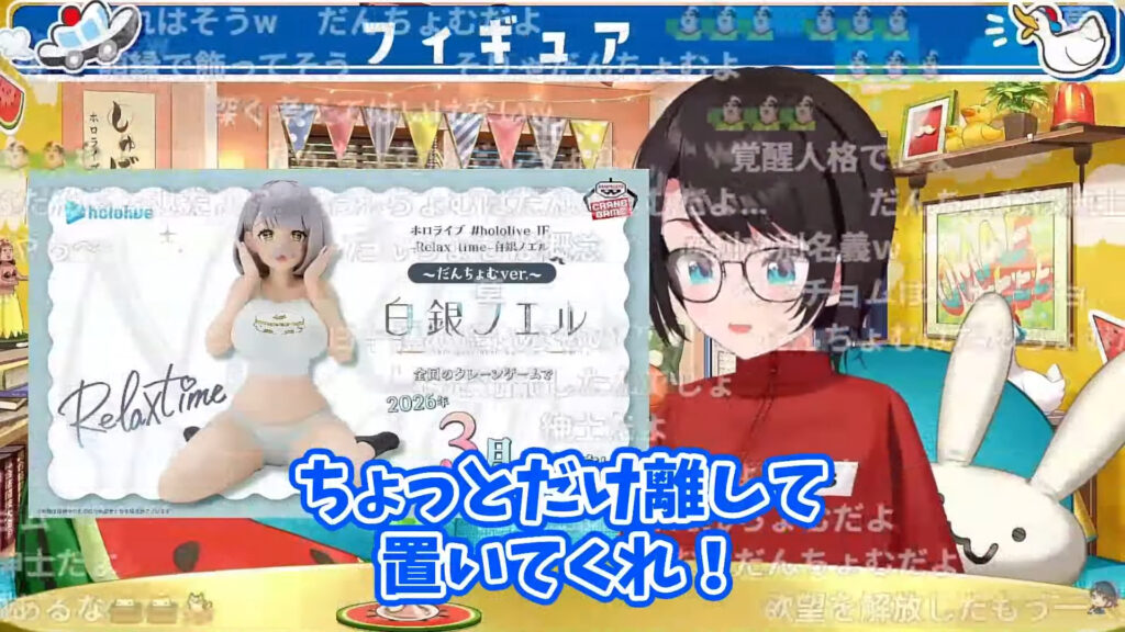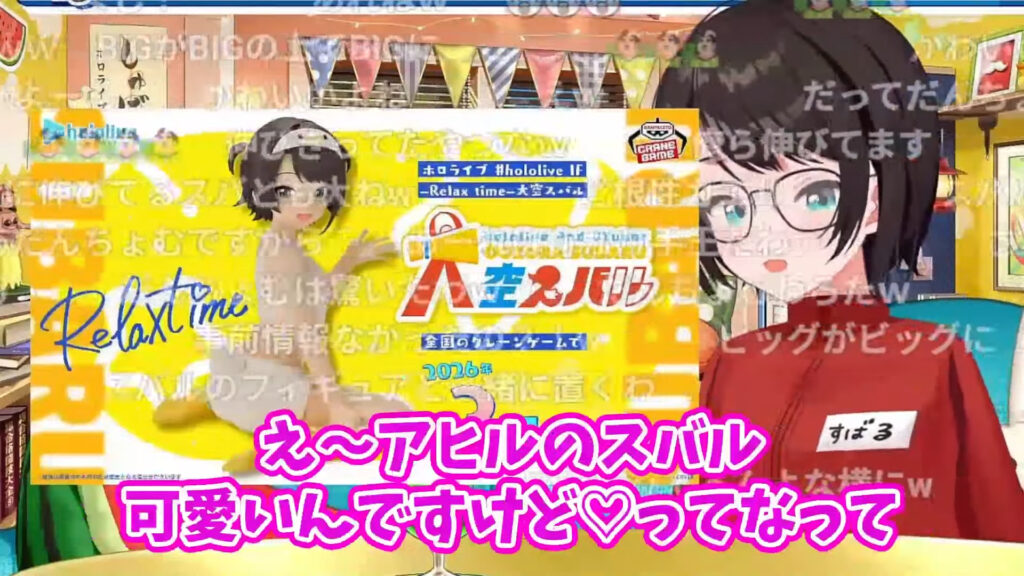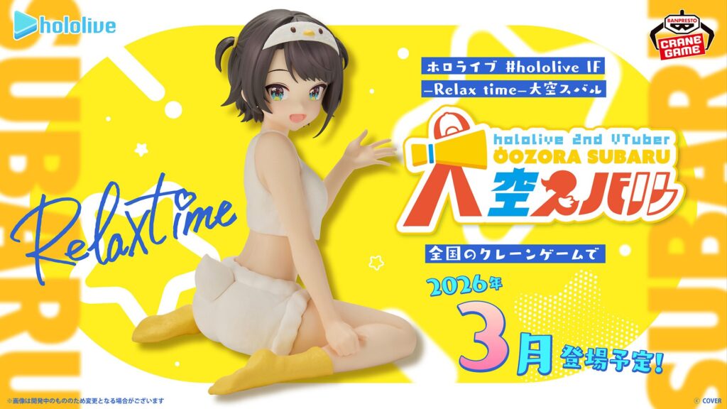 スバルのフィギュアは、自身のマスコットでもある「アヒル」の姿でくつろぐ可愛らしいデザイン。スバル自身もこのデザインには「え、可愛いってなって、すごいテンション上がった」とご満悦の様子でした。
