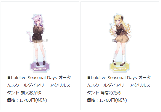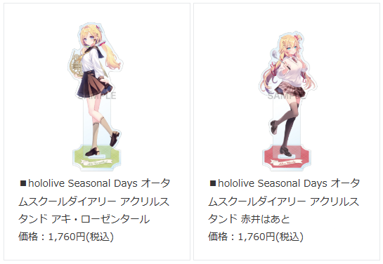 - hololive Seasonal Days オータムスクールダイアリー シリーズ各種