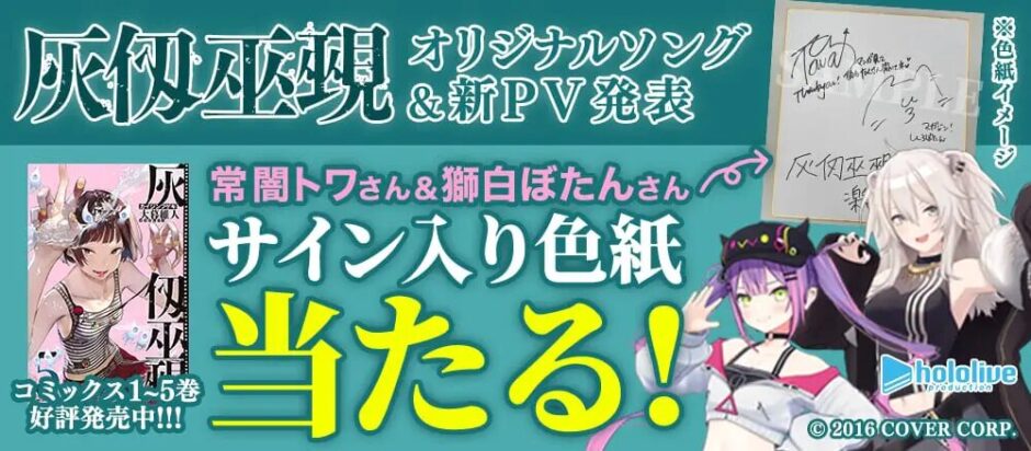 📢『灰仭巫覡』新PV公開中✨✨#常闇トワ さん × #獅白ぼたん さんが歌唱を担当している新PVの公開を記念して、お2人のサイン入り色紙が当たる!