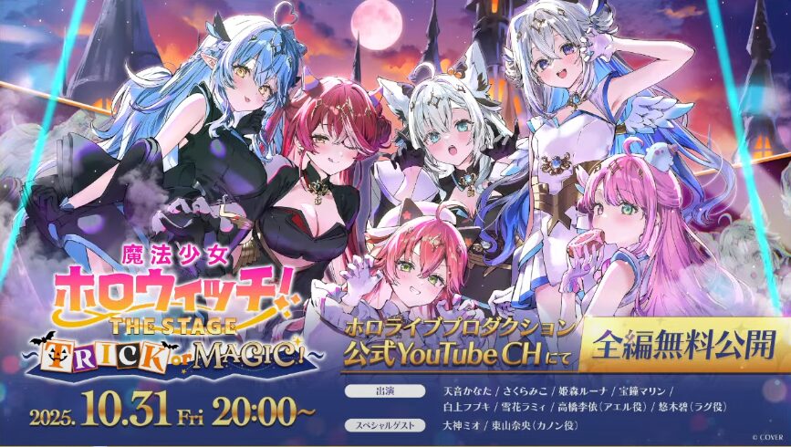 ホロライブのメディアミックス企画「魔法少女ホロウィッチ!」の新たな展開として、「魔法少女ホロウィッチ! THE STAGE 〜TRICK or MAGIC!〜」が、2025年10月31日(金)のハロウィン当日に公開されることが決定しました。