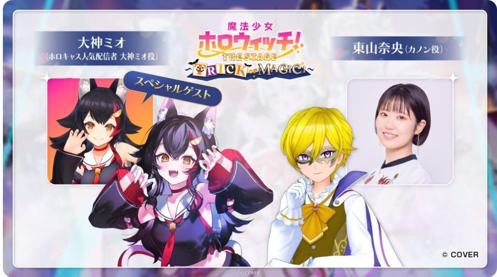 また、スペシャルゲストとして、ホロキャス配信者・大神ミオ役として大神ミオさん、人気歌手・カノン役として東山奈央さんの出演も発表されており、豪華なキャスト陣による舞台に期待が高まります。