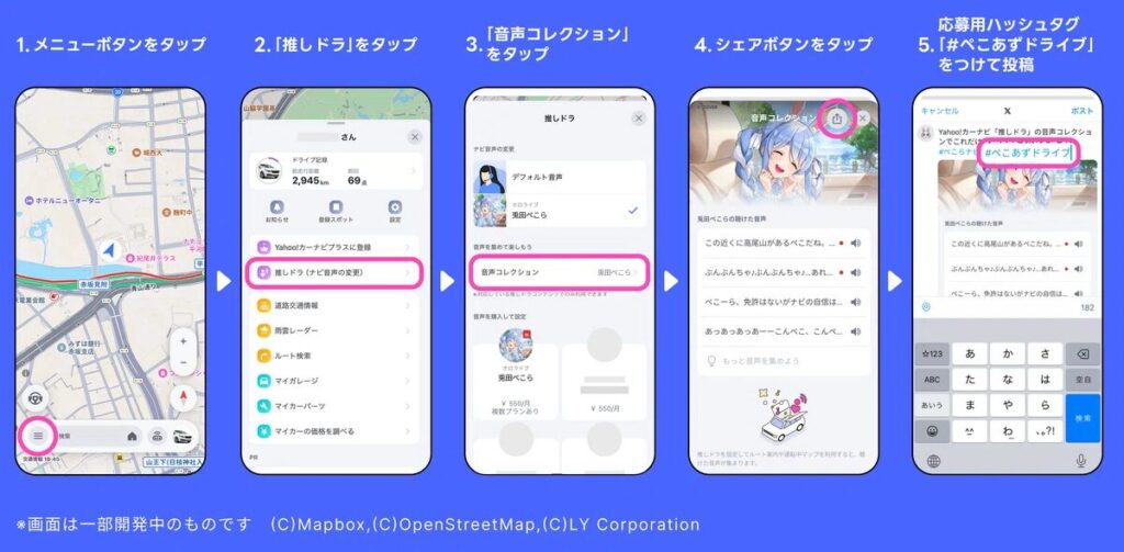 2025年8月28日、ヤフー株式会社は、無料カーナビアプリ「Yahoo!カーナビ」で提供中の「推しドラ」機能において、ホロライブ所属の「AZKi」と「兎田ぺこら」のボイスを購入したユーザーを対象としたX(旧Twitter)シェアキャンペーンを開始しました。