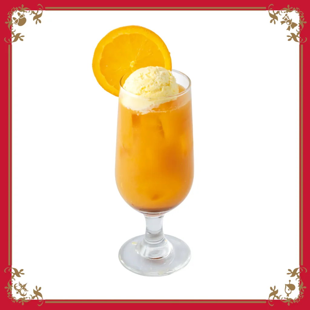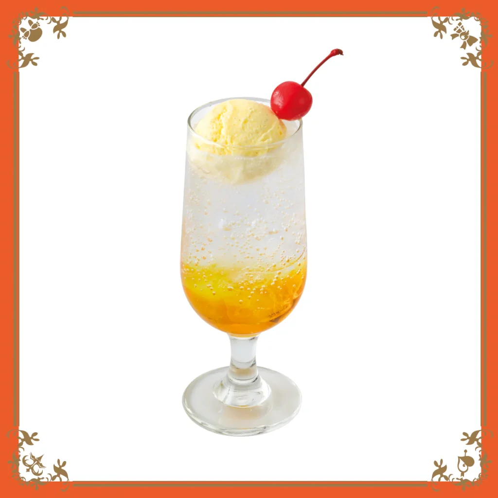 価格:990円(税込1,089円) 彼女の瞳の色を思わせる鮮やかなオレンジティーを使用したフロートです。甘く爽やかな香りで、すっきりとした後味が楽しめます。