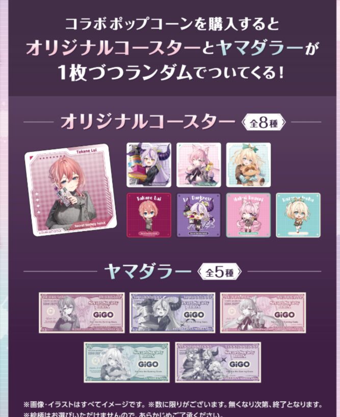 コラボポップコーンを購入した場合も、ノベルティコースターとヤマダラーが各1枚ランダムで付いてきます。