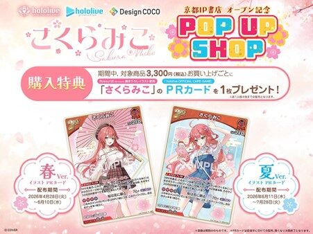 2026年4月28日、京都髙島屋S.C.[T8]6階に「京都 IP書店」がオープンします。これを記念して、ホロライブの人気VTuber「さくらみこ」さんのPOP UP SHOPが開催されます。和の雰囲気に包まれた会場で、限定グッズの販売や豪華な展示が行われます。