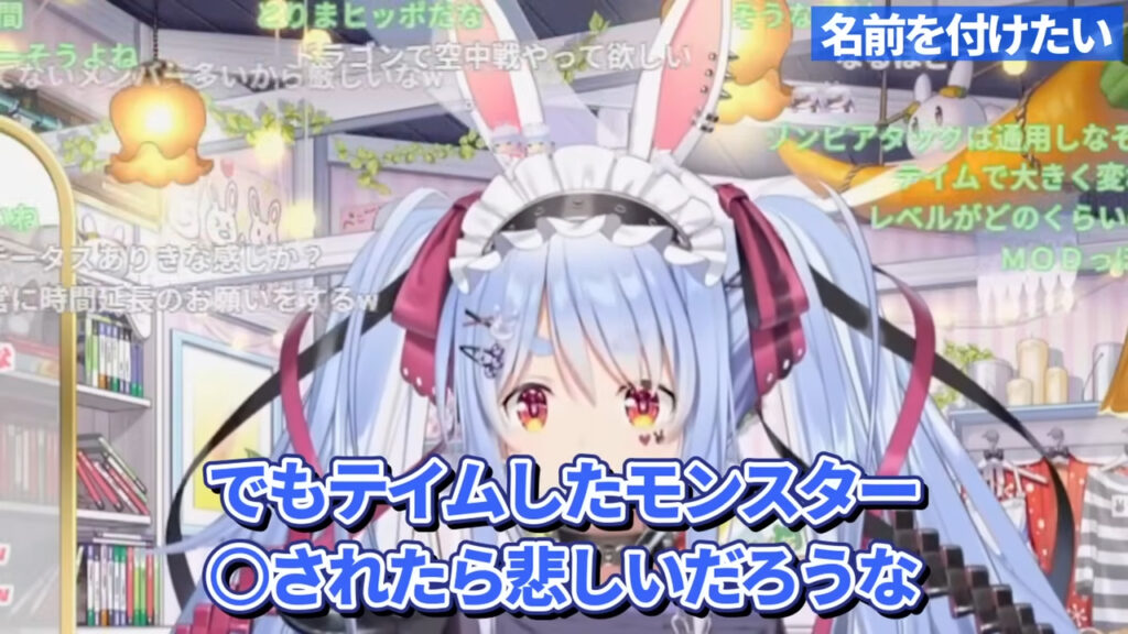 「名前を付けたら(倒された時に)泣くよ」と語り、苦労して捕まえた相棒が倒され、チャット欄に「〇〇が倒されました」と表示される瞬間の辛さを懸念。それでも、ドラマを生むために「名札」は配布したいという、配信者としての思いも明かしました。