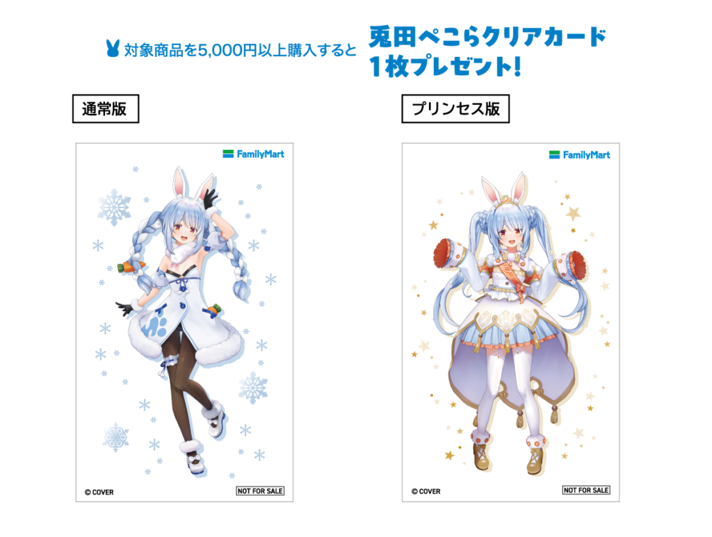 - 特典1(店頭):購入時に「兎田ぺこらクリアカード」を1枚プレゼント(無くなり次第終了)