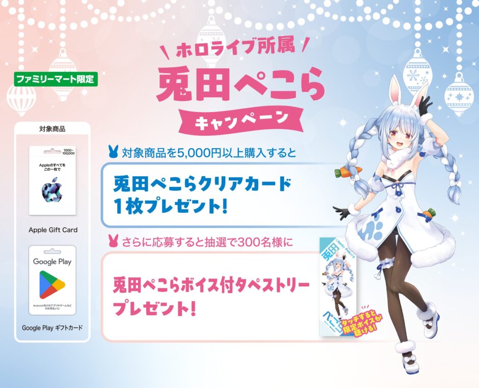 ファミリーマートで、ホロライブ所属の人気VTuber「兎田ぺこら」とコラボしたキャンペーンが、2026年1月6日(火)から始まりました。