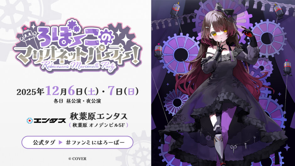 VTuber「ロボ子さん」のチャンネル登録者100万人突破を記念したファンミーティング「ろぼ~このマリオネットパーティー!~Robocosan’s Marionette Party~」の開催が決定しました!