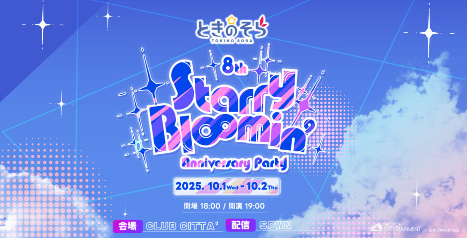 ときのそらさんが、活動8周年を記念したワンマンライブ『ときのそら 8th Anniversary Party「Starry Bl∞min’」』を開催します。