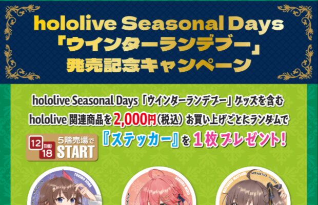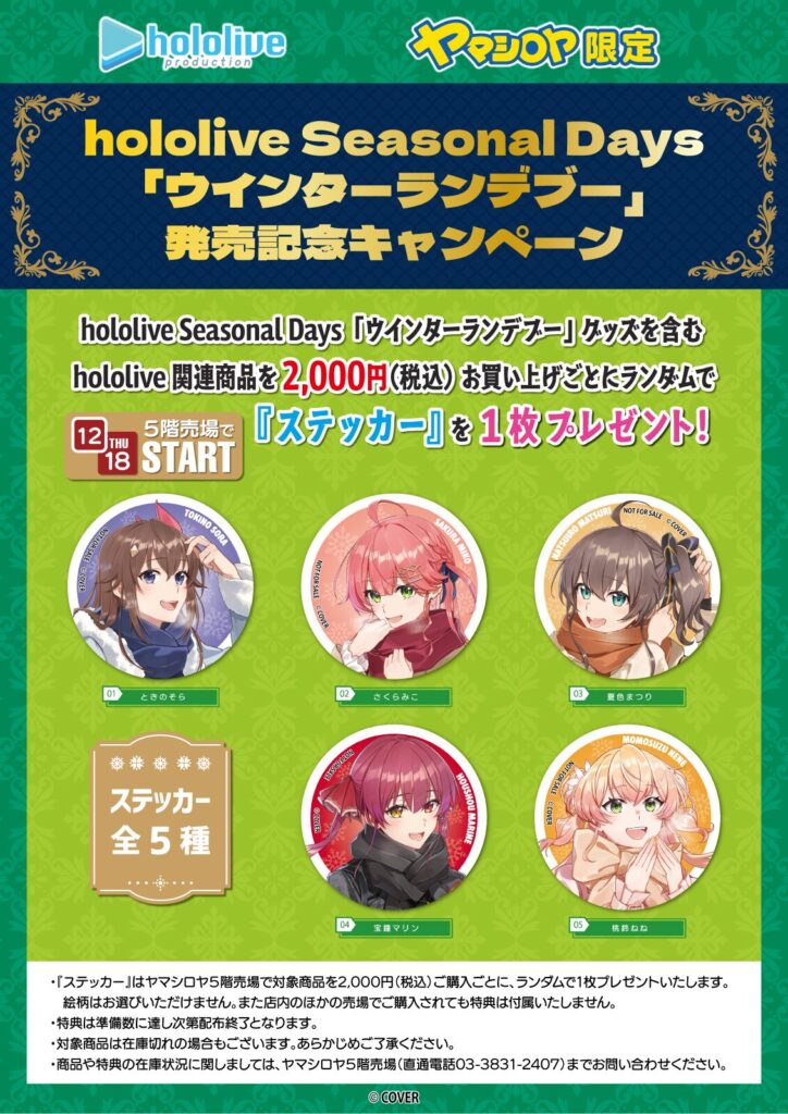 【上野ヤマシロヤ】ホロライブ冬グッズ購入で限定ステッカー配布、12月18日から先着順